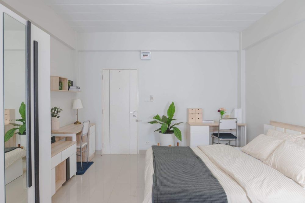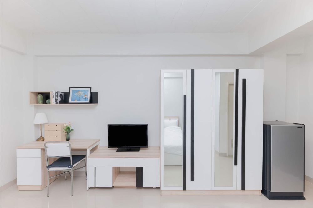 (เตียง, ตู้เสื้อผ้า, โต๊ะอ่านหนังสือ 2ชุด และชั้นวางทีวี)